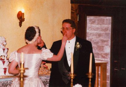- Married couple eating cake.